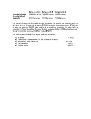 El director general de Plásticos del sur SA quiere asegurarse de que el candidato al puesto de jefe de presupuestos conoce cómo elaborar presupuestos. Se le pide al candidato que elabore 8 presupuestos diferentes utilizando la información proporcionada sobre la producción de 3 líneas de plumas de plástico, costos de materiales, mano de obra, inventarios inicial y final, gastos indirectos de fabricación y administración.