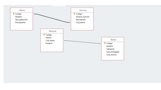 Este documento describe la información que se almacenará sobre una feria de diversiones, incluyendo datos sobre los stands, los servicios que ofrecen, el personal y los patrocinadores. Se almacenarán códigos, categorías, nombres, horarios y otras características de los stands, servicios, empleados y marcas patrocinadoras, así como las relaciones entre ellos.