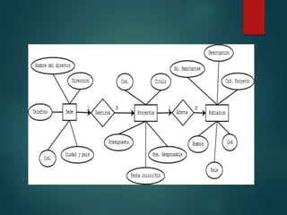 Una ONG desea crear una base de datos para rastrear todos sus proyectos. La base de datos almacenará información sobre las sedes de la ONG en diferentes países, como su identificador, ubicación y director. También almacenará detalles sobre los proyectos de cada sede como su título, código, fecha y presupuesto, así como las poblaciones afectadas por cada proyecto con su nombre, país, población e inversión.