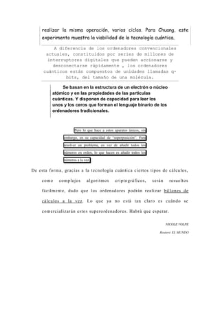 IBM ha desarrollado el ordenador cuántico más avanzado del mundo, que es capaz de resolver problemas matemáticos en segundos que llevarían cientos de años a una persona. El ordenador utiliza las propiedades físicas cuánticas de los átomos como procesador y memoria en lugar de chips de silicio, empleando cinco átomos. Esto demuestra la capacidad de los ordenadores cuánticos para resolver problemas a una velocidad mucho mayor que los ordenadores convencionales debido a su habilidad para realizar cálculos de forma simult