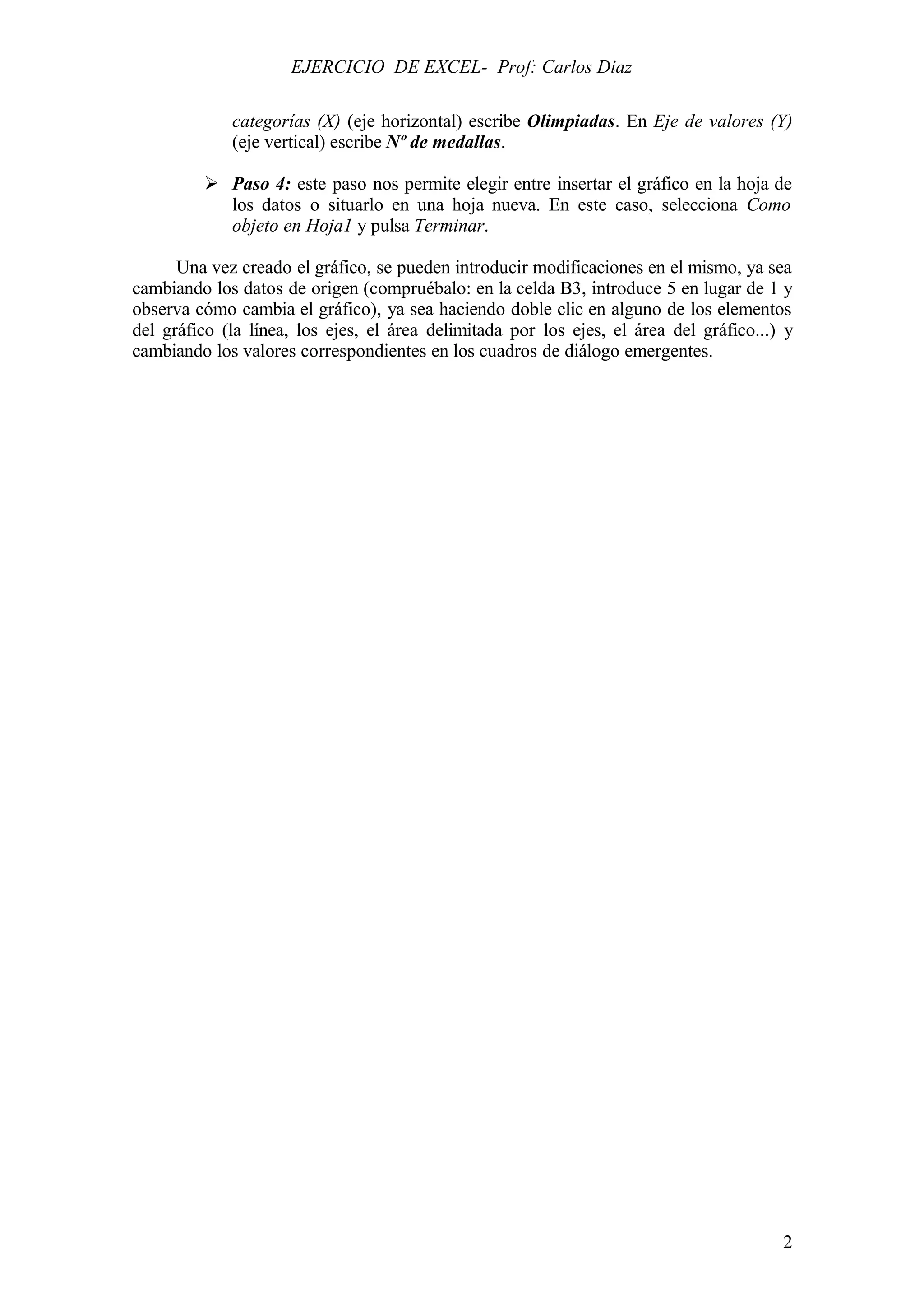 Este documento proporciona instrucciones para crear un gráfico de líneas en Excel que muestre el número de medallas de oro obtenidas por España en las últimas cinco Olimpiadas. Se explican los pasos para seleccionar los datos relevantes de una tabla, generar un gráfico de líneas y personalizarlo agregando títulos y etiquetas para los ejes. Adicionalmente, se indica que los datos del gráfico pueden modificarse dinámicamente al cambiar los valores en la hoja de cálculo.