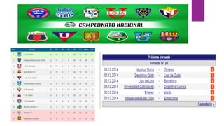 El documento habla sobre el fútbol en Ecuador. Menciona que el deporte fue introducido por Juan Alfredo Wright a finales del siglo XIX después de vivir en Inglaterra. También describe al Barcelona Sporting Club de Guayaquil, fundado en 1925, que juega en la Serie A y tiene su propio estadio llamado Monumental Banco Pichincha. Además, brinda información sobre la selección nacional masculina y femenina de Ecuador.