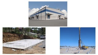 Este documento presenta un problema de ingeniería geotécnica que involucra el cálculo de asentamientos para dos alternativas de cimentación de una planta industrial. La primera alternativa implica el uso de una losa corrida sobre el terreno natural, mientras que la segunda propone el uso de pilotes que se hinchen hasta una profundidad de 12 metros. El documento describe el perfil del subsuelo, los pasos para calcular las presiones iniciales y finales bajo la losa, y los métodos para estimar las contribuciones al asentamiento de cada estrato,