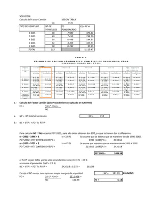 Este documento presenta el cálculo del diseño de una estructura de pavimento flexible para un período de 20 años en una vía secundaria ubicada en la zona III de Venezuela. Se proporcionan datos de tráfico, suelos, materiales y condiciones climáticas. Se realizan cálculos para determinar factores de carga, espesores mínimos requeridos y la estructura definitiva propuesta de 18.5 cm de mezcla asfáltica, 30 cm de base y 23.5 cm de sub-base, totalizando 72 cm.