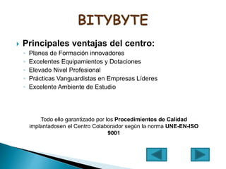 El documento proporciona información sobre la Academia de Informática, ubicada en Palma de Mallorca. Ofrece diversos cursos de formación en informática, programación y telemática de manera reglada, continua u ocupacional. Los cursos se imparten en dos aulas equipadas con ordenadores de última generación. En el curso 2013-2014, la mayor parte de las matrículas fueron para cursos de aplicaciones y programación.