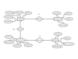 Este documento describe un ejercicio que involucró una relación de muchos a muchos, lo que requirió crear una tabla separada para representar la relación. Al realizar más ejercicios, se ha vuelto más fácil comprender las relaciones.