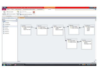 Este documento describe un ejercicio en el que se observó que todas las entidades tenían una relación de muchos a muchos y, por lo tanto, fue necesario crear tablas para representar esa relación.