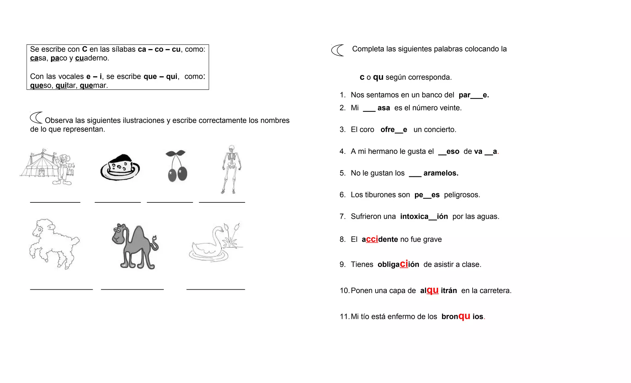 Se escribe conC en las sílabas ca – co – cu, como: Completa las siguientes palabras colocando la