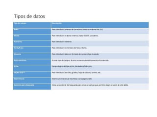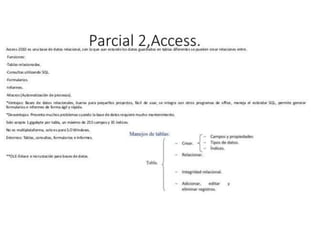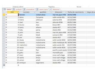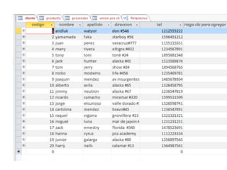 El documento describe ejercicios sobre la gestión de datos para una empresa, una tienda informática y una farmacia, enfocándose en las relaciones entre clientes, productos y proveedores. Se abordan las dificultades encontradas en la comprensión de las relaciones y la laboriosidad de los ejercicios. Las relaciones entre entidades se caracterizan por ser de uno a muchos y de muchos a muchos, dependiendo del contexto.