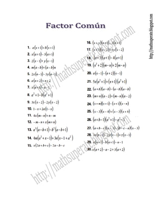 Ejercicios de la mayoria de los casos de factorización obtenidos del álgebra de Baldor