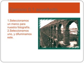 Este documento resume una serie de ejercicios realizados en Gimp. Los ejercicios incluyen crear fotomontajes mediante el recorte y pegado de diferentes elementos de fotos, retocar fotos eliminando arrugas, cambiando el color de ojos y pelo, eliminando ojos rojos, coloreando zonas específicas y restaurando fotos antiguas. Cada ejercicio describe los pasos realizados de manera concisa.
