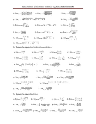 El documento presenta una serie de ejercicios sobre cálculo de límites en diferentes contextos: