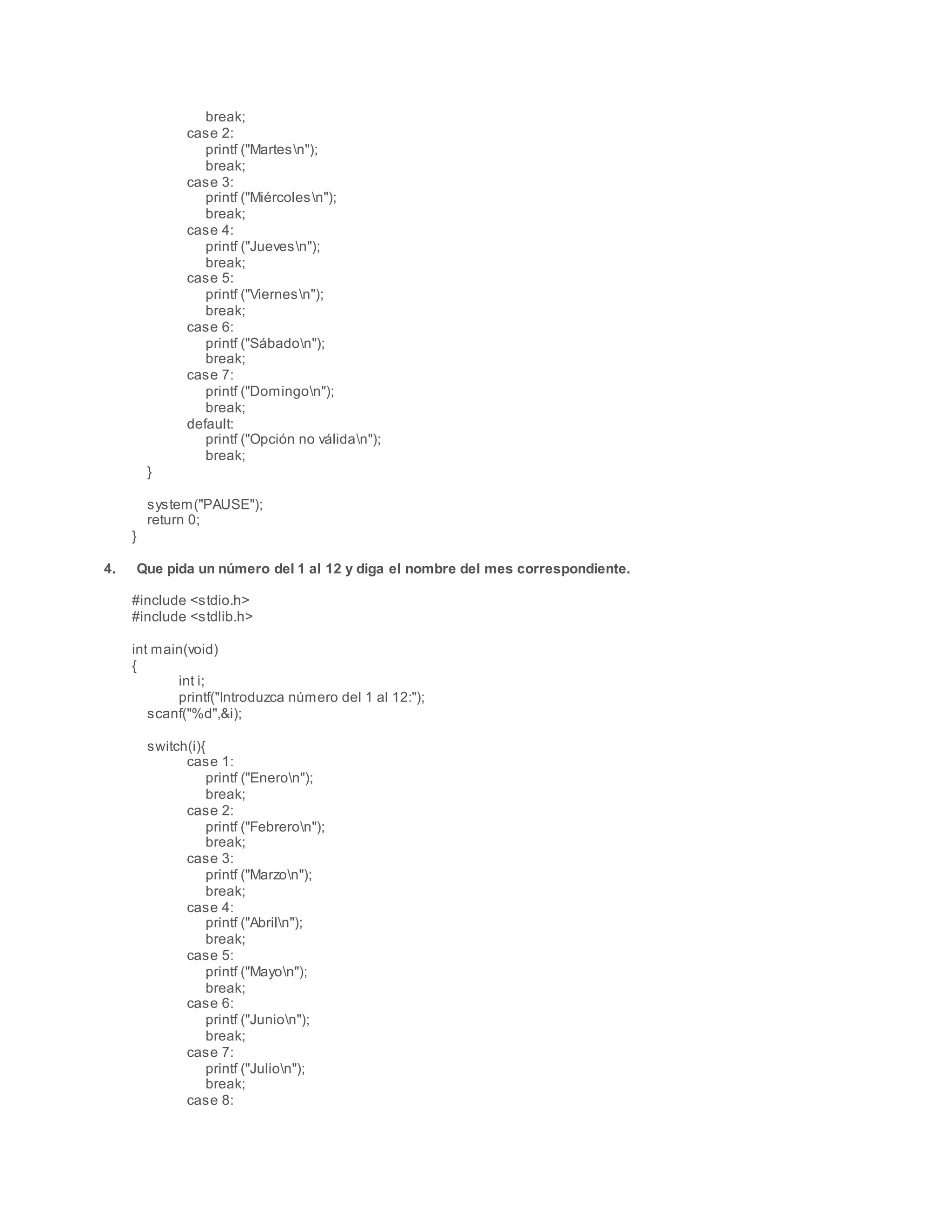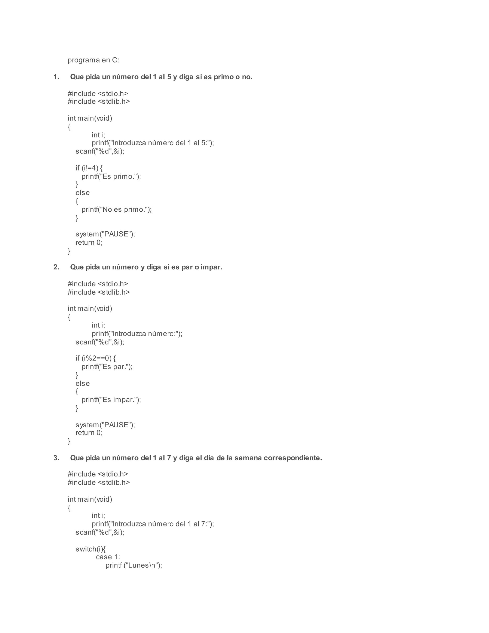 El documento contiene 20 programas en C que resuelven diferentes problemas lógicos y matemáticos mediante el uso de condicionales y estructuras de control. Los programas piden valores de entrada al usuario y muestran mensajes dependiendo de las condiciones evaluadas.