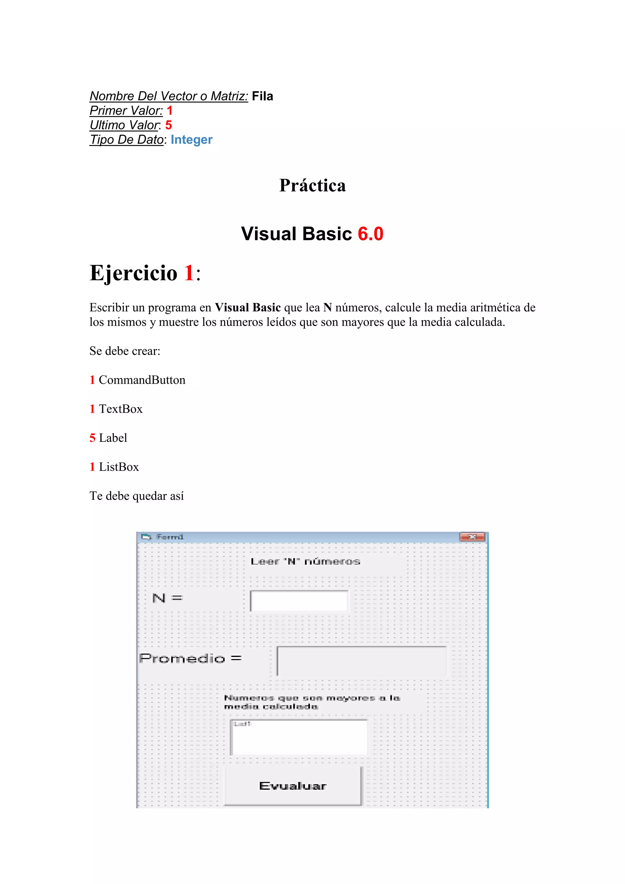 Este documento explica los vectores o arreglos en programación. Define un vector como una zona de almacenamiento continuo que contiene una serie de elementos del mismo tipo ordenados en fila. Muestra cómo declarar un vector en Visual Basic y realiza ejemplos prácticos de programas que utilizan vectores para almacenar y procesar datos.