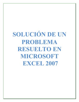 Este documento proporciona instrucciones para resolver varios problemas en Microsoft Excel 2007. Explica cómo generar diferentes tipos de series numéricas (lineales, geométricas, de fechas), calcular edades a partir de fechas de nacimiento, y determinar cuotas de préstamos e intereses.