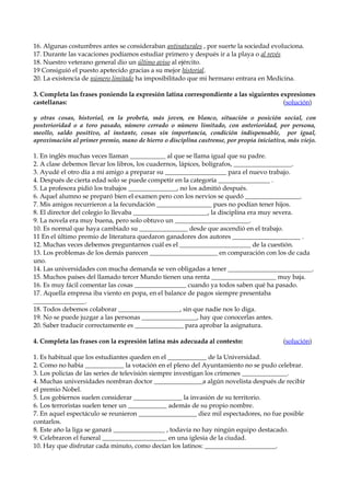 Este documento presenta una lista de expresiones latinas comúnmente usadas en español, junto con sus traducciones. Explica su significado y proporciona ejemplos de cómo se usan en diferentes contextos. Además, incluye ejercicios de completar frases y emparejar expresiones latinas con sus equivalentes en español para practicar el uso correcto de estas locuciones.