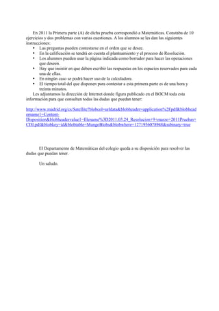 La Comunidad de Madrid ha creado nuevos diplomas y premios para reconocer el rendimiento académico de los estudiantes de Educación Secundaria Obligatoria. Los diplomas se otorgarán a aquellos estudiantes que obtengan las mejores calificaciones en la Prueba de Conocimientos y Destrezas Indispensables de tercero y en determinadas asignaturas de cuarto. El premio extraordinario se otorgará a los estudiantes con las calificaciones más altas en la prueba. El departamento de matemáticas ha