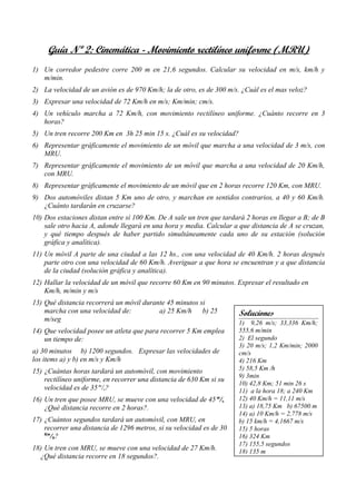 Este documento contiene 27 problemas relacionados con el movimiento rectilíneo uniformemente variado (MRUV), incluyendo cálculos de aceleración, velocidad y distancia recorrida para objetos en movimiento con aceleración constante, así como gráficas de velocidad contra tiempo. Los problemas cubren una variedad de escenarios como caída libre, lanzamiento de proyectiles y aceleración/desaceleración de vehículos. Las respuestas se proporcionan al final.