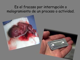 Este documento describe los diferentes tipos y métodos de aborto, incluyendo abortos espontáneos, inducidos quirúrgicos y con medicamentos. También detalla las posibles secuelas físicas y psicológicas del aborto, como riesgos de cáncer, complicaciones del embarazo futuro, trastornos de estrés postraumático y abuso de sustancias. Finalmente, argumenta que los estados tienen la obligación de penalizar el aborto para proteger la vida humana de la misma manera que prohíben el asesinato,
