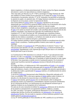 El documento resume la historia y regulación del aborto en Perú. Explica que el aborto se define como la interrupción del embarazo que causa la muerte del feto. Revisa las leyes y códigos penales de Perú desde 1863, los cuales han ido evolucionando en su tratamiento del aborto terapéutico y ético. También analiza la jurisprudencia respecto al aborto y define los diferentes tipos penales como el autoaborto, el aborto consentido y el no consentido.