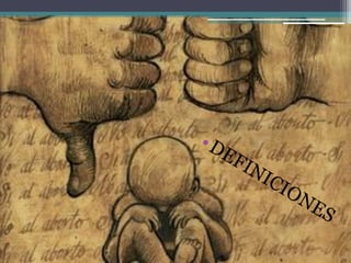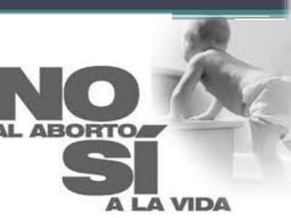 El documento trata sobre el aborto, definiéndolo como la privación del nacimiento antes de las 22 semanas de gestación. Se clasifica en aborto espontáneo e inducido, detallando tipos y sus características, además de la incidencia de abortos espontáneos en embarazos. Con un enfoque emotivo, concluye abogando por la vida y el amor que se experimenta durante la maternidad.