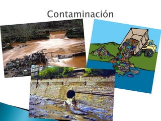 El documento describe las diferentes formas en que el agua se presenta en la Tierra, incluyendo mares, océanos, aguas superficiales y subterráneas. También explica que el agua es el recurso natural más importante y la base de toda forma de vida.