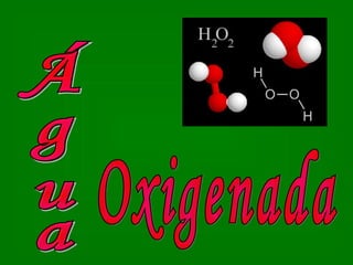 El documento describe las propiedades y usos del agua oxigenada. Se desarrolló en la década de 1920 para tratar infecciones en soldados y redujo las amputaciones en la Segunda Guerra Mundial. Es un potente desinfectante al 3% y es barato, fácil de usar y almacenar. Sin embargo, su uso no se difunde ampliamente debido a la competencia de productos farmacéuticos y de desinfección más caros. El documento luego enumera 10 usos domésticos del agua oxigenada, que incluyen des