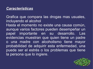 El alcoholismo genera una fuerte dependencia física al alcohol que se manifiesta a través de síntomas de abstinencia. No existe una causa común del alcoholismo, aunque factores genéticos y ambientales como el estrés pueden desempeñar un papel. Hay dos tipos de alcoholismo, uno caracterizado por un aumento progresivo del consumo y otro asociado a problemas de conducta durante la adolescencia. Los síntomas incluyen continuar bebiendo a pesar de los problemas de salud, trabajo o familia que cause, y la incapacidad de controlar la ingesta