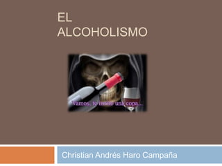 El documento describe el alcoholismo como una enfermedad causada por la dependencia al alcohol. Explica sus características, incluyendo la tolerancia creciente y los síntomas de abstinencia. También cubre los tratamientos como la desintoxicación y terapia, así como los efectos del consumo excesivo de alcohol a corto y largo plazo. Finalmente, distingue entre diferentes tipos de bebedores como los moderados frente a los alcohólicos.
