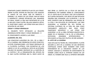 El documento resume las principales ideas de Platón sobre el alma y la política. 1) Platón dividió el alma en tres partes: la racional, la irascible y la apetitiva. 2) Propuso una sociedad ideal gobernada por filósofos que conocen las Ideas. 3) Explicó su teoría del conocimiento a través del mito de la caverna, donde los prisioneros ven sombras en lugar de la realidad.