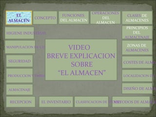 Este documento habla sobre conceptos relacionados con los almacenes. Explica que un almacén es el lugar destinado a guardar mercancías y describe sus funciones principales como el mantenimiento y manipulación de productos. También describe las operaciones que se realizan en un almacén como la recepción, almacenaje, picking y expedición de mercancías. Además, explica los principios básicos del almacenaje y las diferentes zonas y clases de almacenes.