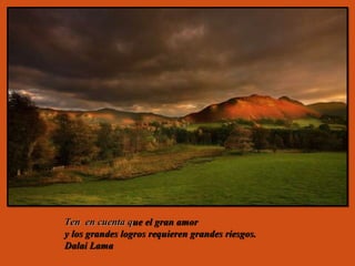 Este documento contiene varias citas sobre el amor de diferentes autores. Algunas de las citas destacan que el amor requiere grandes riesgos, que nada pesa más que un corazón vacío de amor, y que el amor es un acto de perdón interminable. Otras citas describen al amor como la fuerza más poderosa del ser humano y dicen que donde reina el amor, las leyes sobran.