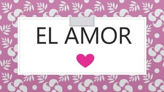 El documento describe el amor de varias maneras. Define el amor como una fuerza poderosa que motiva e impulsa a las personas y les da alegría. Explica que amar es aceptar y perdonar, y que trae grandes beneficios físicos y psicológicos. Finalmente, señala que el amor comienza en el hogar cuando las familias oran y permanecen unidas.