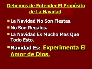 El documento habla sobre el amor incomparable de Dios. Explica que Dios vino al mundo por amor a la humanidad, nació en un pesebre y murió en la cruz. A pesar de que todos éramos pecadores, Dios nos amó y envió a su Hijo para salvarnos. El amor de Dios es eterno e infinito. El documento insta a los lectores a experimentar el amor de Dios en sus vidas y dejarse envolver por su amor.