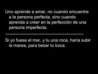 Este documento trata sobre el amor y la amistad a través de poemas y citas. Habla sobre aprender a amar a alguien imperfecto, la amistad verdadera que duplica alegrías y divide tristezas, y cómo el amor no tiene límites.