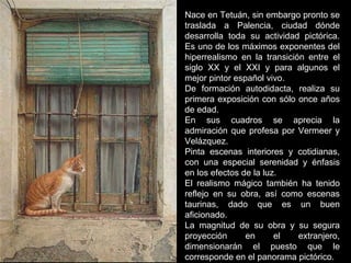Antonio Guzman es un pintor español nacido en Tetuán pero criado en Palencia, donde desarrolló toda su carrera artística. Es considerado uno de los máximos exponentes del hiperrealismo en España y por algunos como el mejor pintor español vivo. Aunque es autodidacta, tuvo su primera exposición a los once años y pinta escenas cotidianas e interiores con influencia de Vermeer y Velázquez, enfocándose en los efectos de la luz. Su gran obra y proyección internacional asegurarán