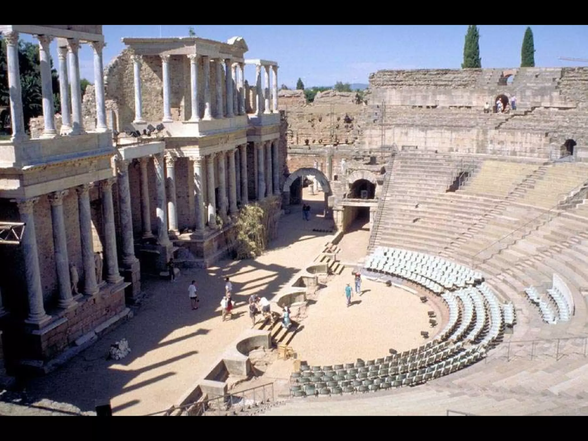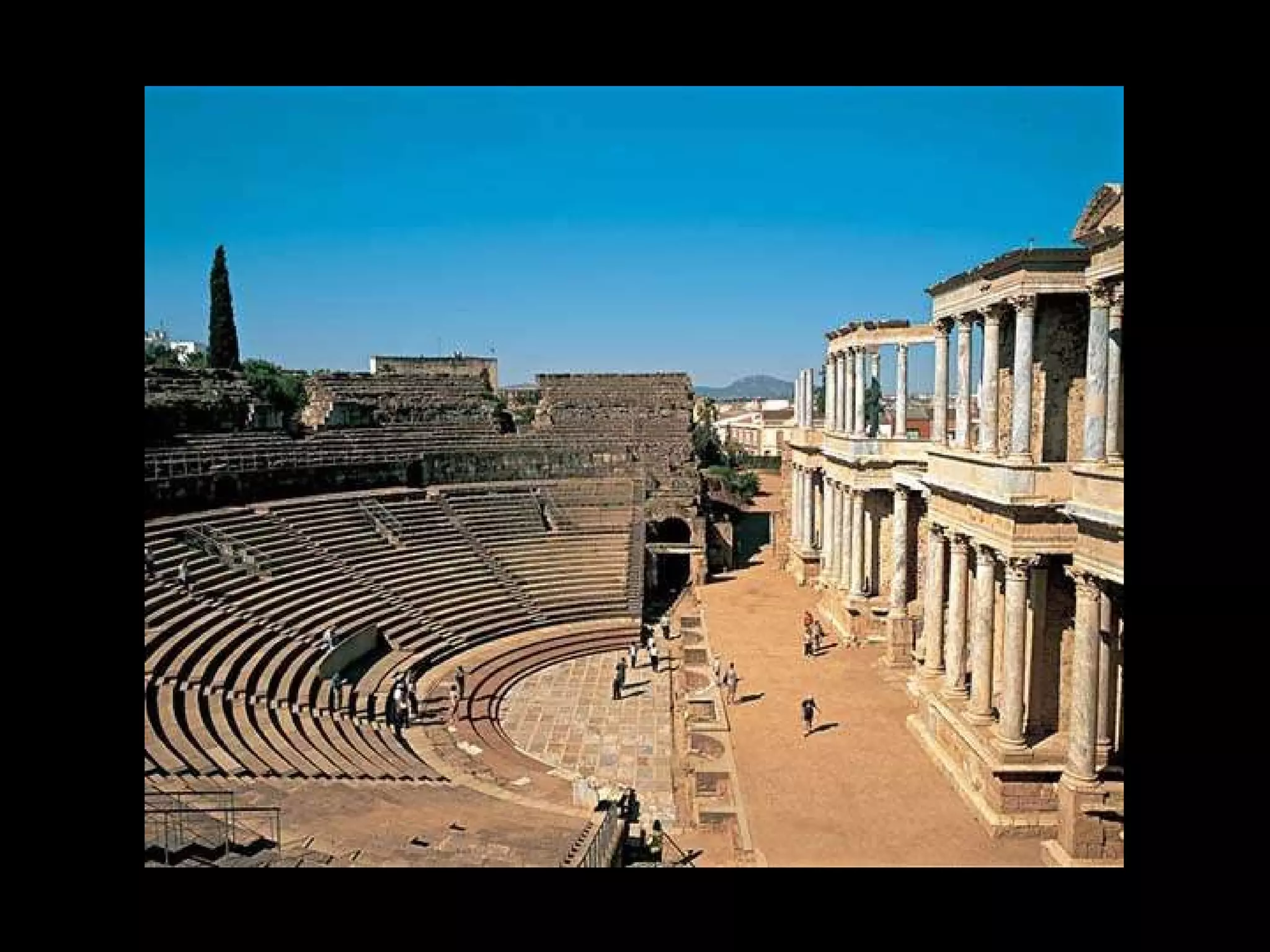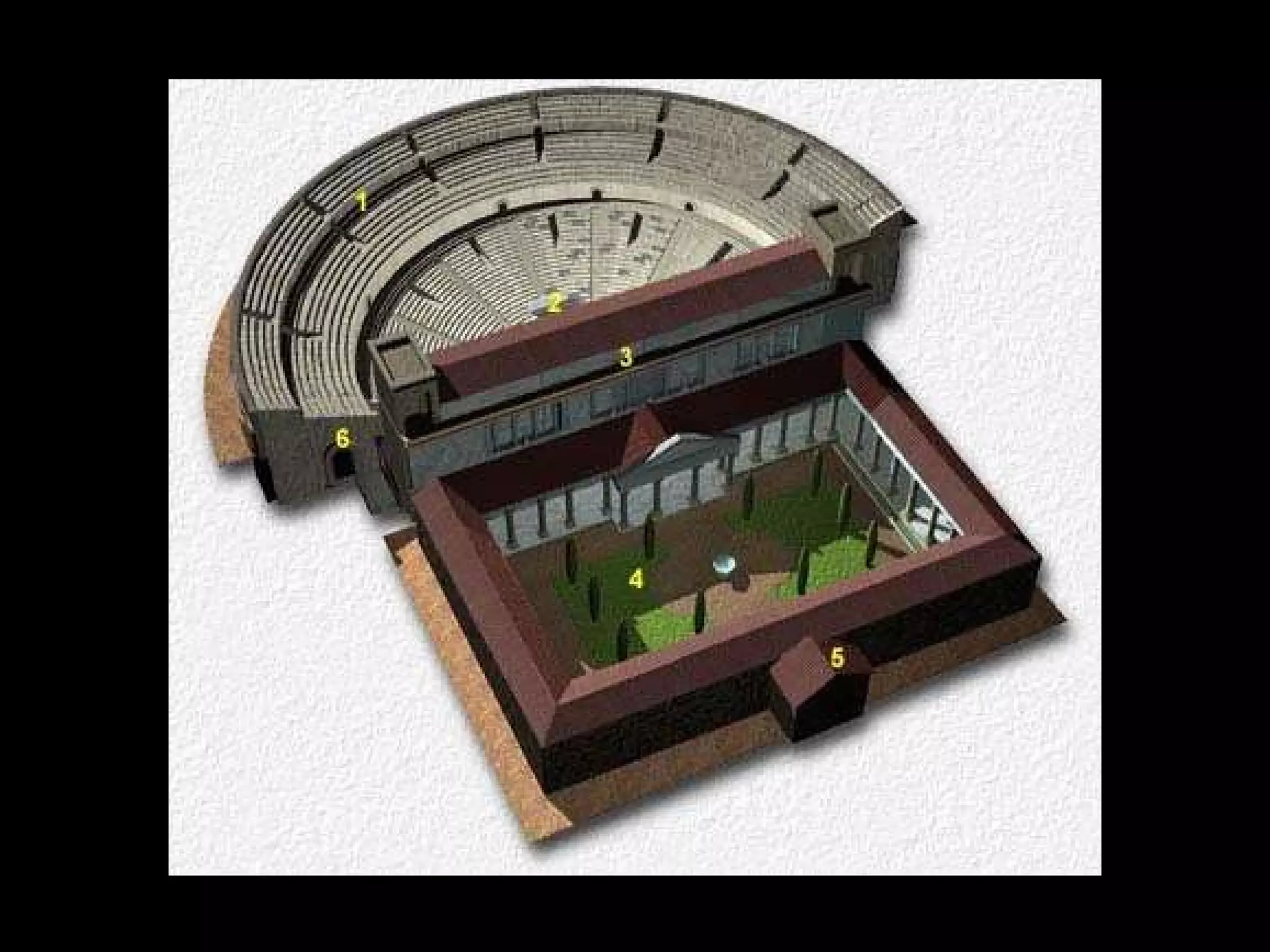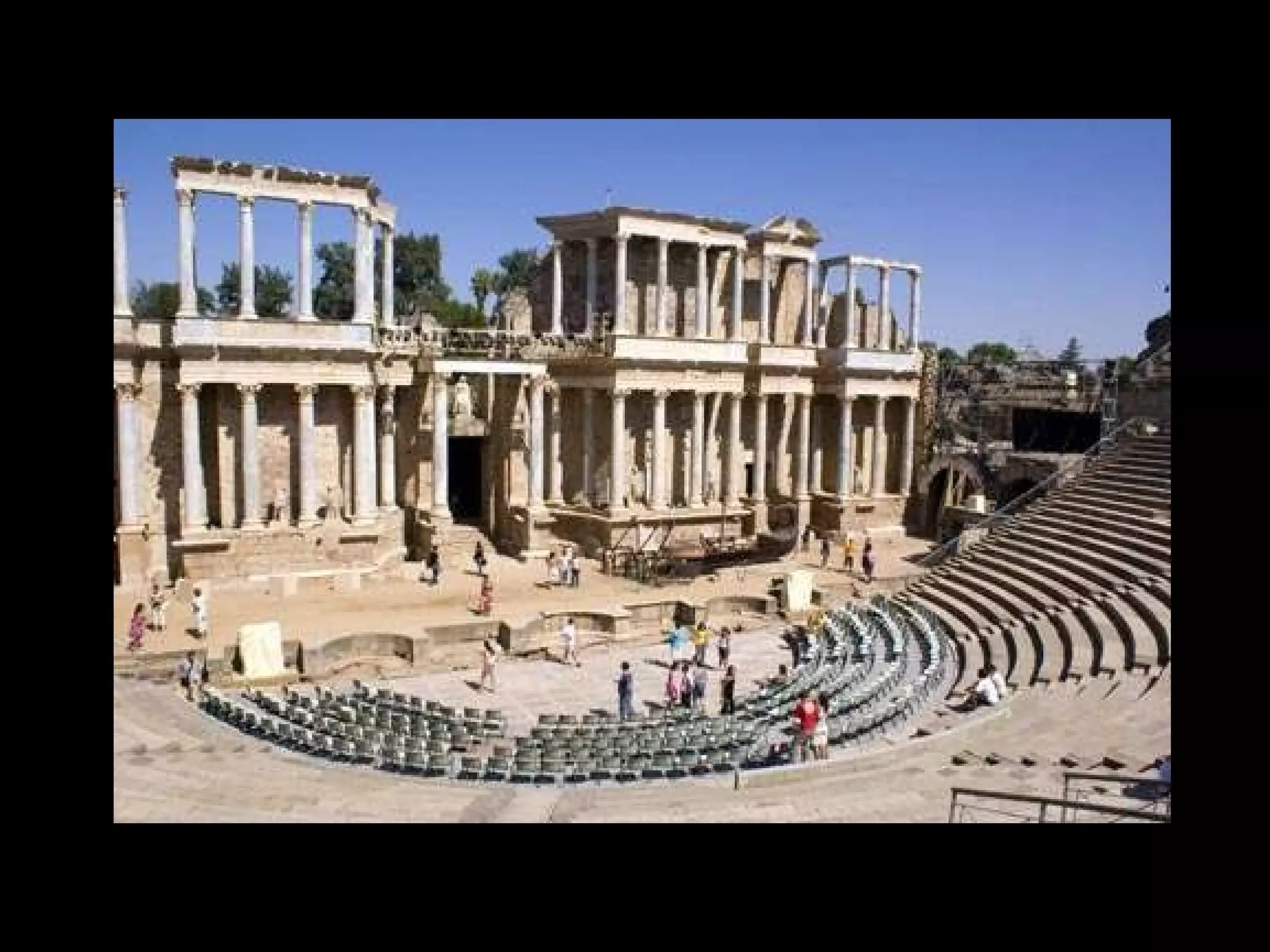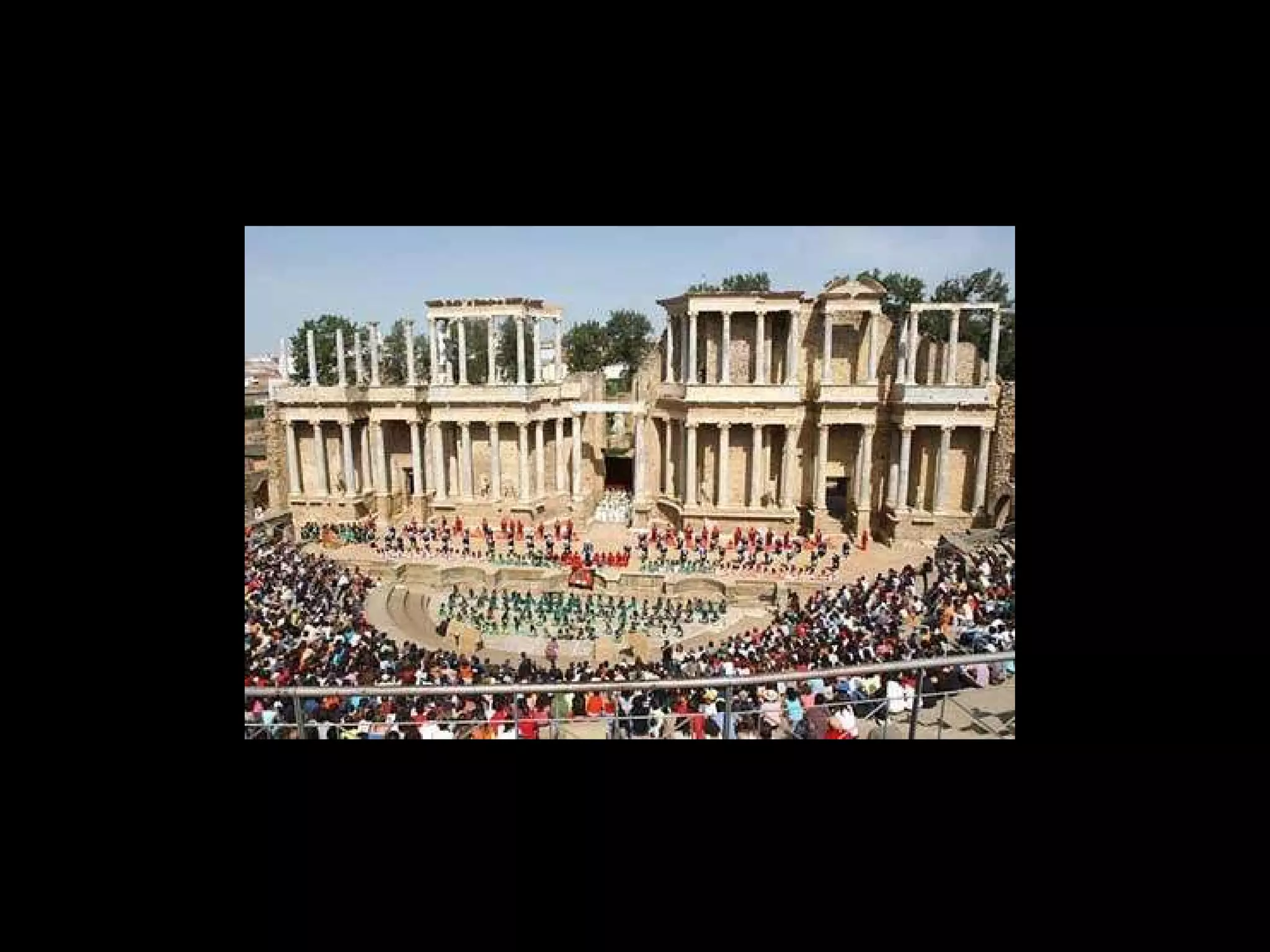 El arte romano estuvo influenciado por el arte griego y etrusco. Se caracterizó por su funcionalidad y racionalidad, y fue utilizado para propagar y centralizar el poder del Imperio romano. La arquitectura romana destacó por su grandiosidad monumental y uso de materiales como el arco, la bóveda y los órdenes arquitectónicos griegos. Construyeron edificios civiles, públicos y teatros notables adaptados al terreno.