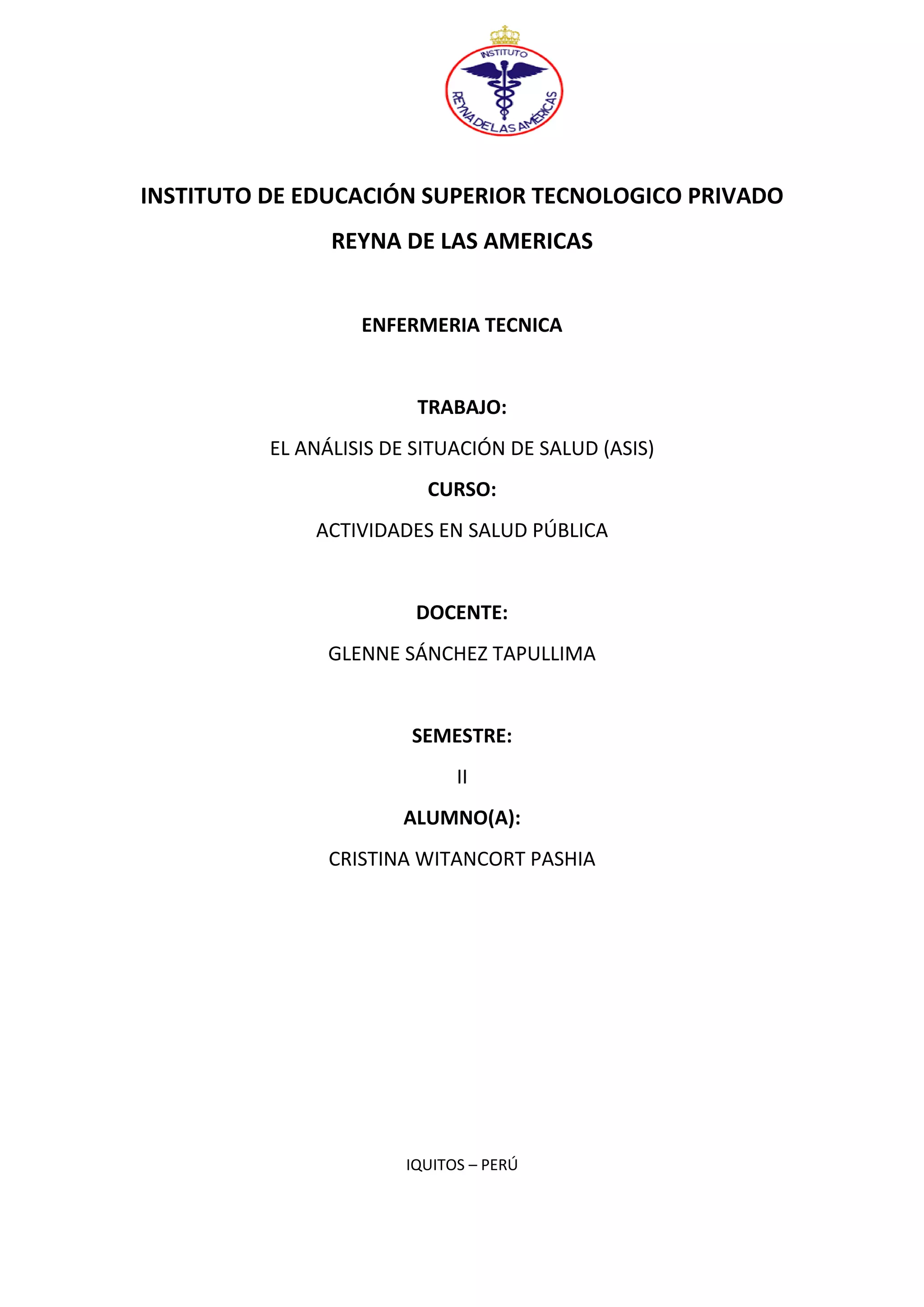 Este documento describe el Análisis de Situación de Salud (ASIS), una herramienta para evaluar la situación de salud de una población. Explica que el ASIS involucra la recopilación y análisis de datos primarios y secundarios para identificar problemas de salud, sus causas y determinantes sociales. Además, provee un marco para la planificación e implementación de estrategias de salud pública dirigidas a mejorar los resultados de salud de una comunidad.