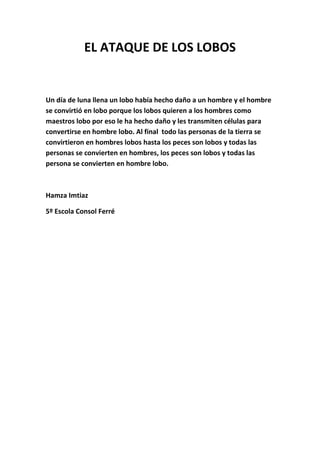 Un hombre fue atacado por un lobo en una noche de luna llena y se convirtió en hombre lobo. Los lobos querían convertir a los humanos para aumentar su manada, por lo que transmitían sus células a las personas que mordían. Eventualmente, todos los seres vivos en la Tierra, incluidos los peces, se convirtieron en hombres lobo.