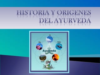 El ayurveda, originado en la ciencia védica hace 1500 años, abarca un sistema de salud integral y se compone de ocho ramas dedicadas al tratamiento de diversas enfermedades y condiciones corporales. Su enfoque se centra en el equilibrio de tres doshas: vata, pitta y kapha, que representan las funciones metabólicas y psicobiológicas del organismo. El ayurveda no solo trata enfermedades, sino que también promueve un estilo de vida saludable y la prevención de enfermedades, siendo adaptable a diferentes culturas y prácticas médicas.