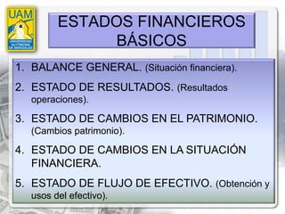 El balance general presenta la situación financiera de una compañía a una fecha determinada, dividiendo los activos (propiedades y derechos), pasivos (obligaciones) y patrimonio (aportes y beneficios de los dueños). Muestra los saldos de las cuentas agrupadas en activo corriente, activo fijo, pasivo corriente, pasivo largo plazo y patrimonio. La ecuación fundamental es que el activo siempre será igual a la suma del pasivo más el patrimonio.