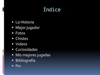 Este documento resume la historia del baloncesto, incluyendo que fue inventado por James Naismith en 1891. También describe al mejor jugador Michael Jordan, con enlaces a videos interesantes y curiosidades como que Brasil fue uno de los primeros países latinoamericanos en practicar el baloncesto. Finalmente, brinda información sobre el éxito reciente del equipo nacional de baloncesto de España.