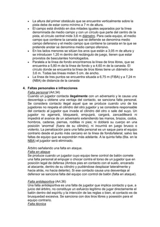 El baloncesto fue creado en 1891 por el profesor James Naismith como un deporte de invierno que se pudiera practicar bajo techo. Consistía en lanzar una pelota a una canasta de melocotones colgada en la pared. Con el tiempo se establecieron las reglas actuales y se convirtió en un deporte olímpico en 1936. Se juega entre dos equipos de cinco jugadores cada uno, cuyo objetivo es anotar más puntos que el contrario lanzando la pelota a la canasta.
