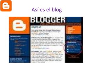 Un blog es un sitio web actualizado periódicamente que recopila artículos de uno o más autores en orden cronológico. Los blogs pueden ser personales, temáticos o empresariales. Contienen información clasificada por fecha, categorías y etiquetas. Los autores de blogs tienen libertad para publicar el contenido que deseen y no requieren permisos o conocimientos técnicos avanzados para crearlos.