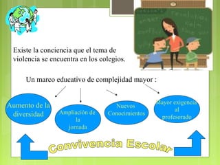 1) El documento trata sobre la violencia escolar y el bullying. 2) Explica las diferentes formas de violencia que pueden ocurrir entre estudiantes, como el acoso físico, verbal y social. 3) También presenta estrategias para prevenir y reducir el conflicto y la crueldad entre estudiantes, como fomentar el conocimiento mutuo, equilibrar el poder y reconocimiento, y establecer consecuencias claras para el abuso.