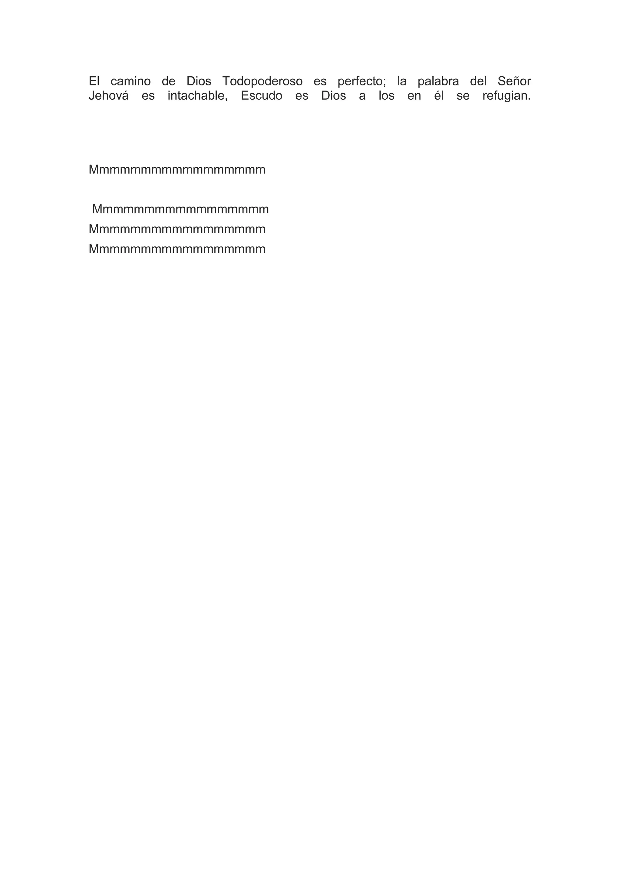 Dios Todopoderoso es perfecto; la palabra del SeñorJehová es intachable, Escudo es Dios a los en él se refugian.<br />Mmmmmmmmmmmmmmmmm<br /> Mmmmmmmmmmmmmmmmm<br />Mmmmmmmmmmmmmmmmm<br />Mmmmmmmmmmmmmmmmm<br />