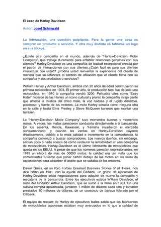 Harley Davidson pasó de estar al borde de la bancarrota a ser una de las compañías con mayores retornos de inversión en los 90 al reinventar su modelo de negocio. En lugar de enfocarse sólo en vender motocicletas, Harley Davidson creó una comunidad y estilo de vida alrededor de su marca a través de estrategias como el Harley Owners Group, lo que generó una lealtad excepcional entre sus clientes. Esta reinvención del enfoque en el cliente salvó a la compañía y condujo a un fuerte crec