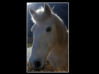 El documento habla sobre el caballo. Explica que es un mamífero grande con un cuello y cola largos. Tiene cuatro patas fuertes con pezuñas y pelaje que puede ser de diferentes colores. Nace de la hembra y vive en praderas silvestres o establos domesticados. Come hierba y granos y se usa para cargar cosas, competir y pasear montado.