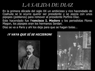 Este documento resume la historia de la Revolución Mexicana y la nacionalización del petróleo bajo Lázaro Cárdenas. Critica que los descendientes de Cárdenas aún reciben pagos de PEMEX por decreto presidencial, lo que genera millones de dólares anuales y ha influenciado la política mexicana. También argumenta que la privatización podría hacer que PEMEX sea más eficiente y mejorar la economía mexicana.