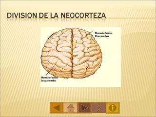Este documento presenta un módulo de instrucción sobre las partes del cerebro humano, su función y ubicación. El objetivo es que los estudiantes reconozcan y comprendan cómo funcionan las diferentes partes del cerebro y cómo afectan las emociones el aprendizaje. El módulo describe cada región del cerebro, incluyendo el cuerpo calloso, hipocampo, cerebelo, tallo encefálico, tálamo, hipotálamo, glándula pituitaria y lóbulos. Al final, los estudiantes responden
